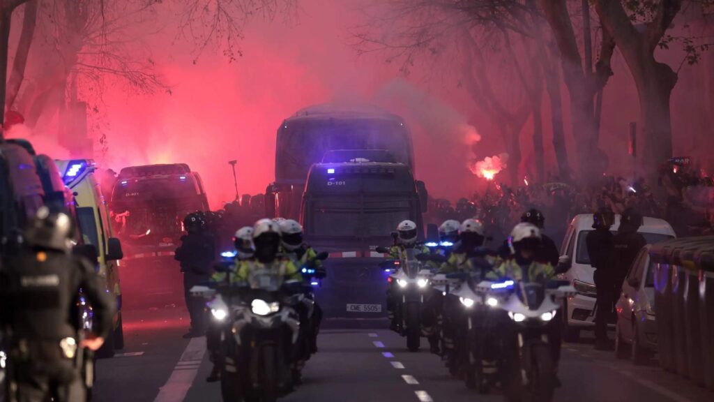 Sin embargo, lo verdaderamente lamentable ha ocurrido antes del silbato inicial del rumano Istvan Kovacs, ya que unos radicales azulgranas han destrozado el cristal del autobús del rojiblanco, algo que no es nuevo, ya que también sucedió hace pocas semanas en la vuelta de las semifinales de la Copa del Rey.